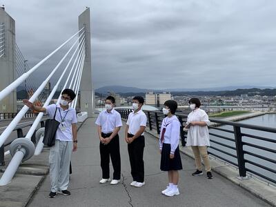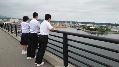 マリンブリッジと小名浜港についてお話が聞けたことで、いわきの歴史や世界との関わりなど、これまでに総合的な学習(いわき桶売総学)で学んだことが、生徒たちの頭の中でよりつながりをもったようです! 小名浜港湾建設事務所の岡部さん、菅野さん、ありがとうございました。
