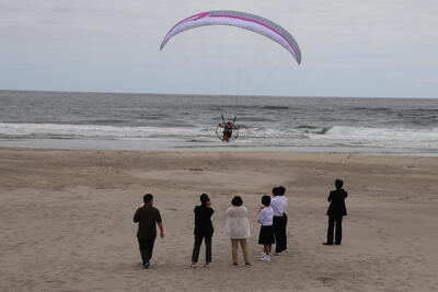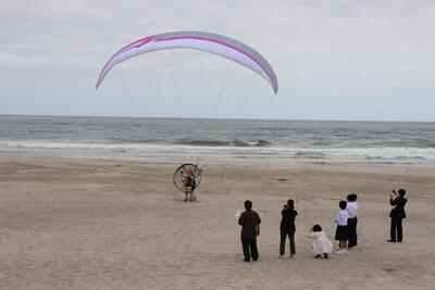 その後、めったに見ることのできないモーターパラグライダーの離陸の瞬間を見ることができました!!