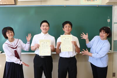 集会で校長先生からお話いただいたように、先輩の今までの頑張り・粘りあるプレーを見てきたからこそ、後輩2人は今回の結果を勝ち取ることができたのです。ありがとう、先輩!!