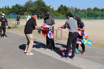 最後の片付けです。皆さんに協力していただいたおかげで、どんどん片付いていきます。万国旗も、桶売中OBの保護者さんたちが、慣れた手つきで片付けてくれました。大先輩、さすがです!