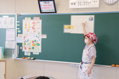 授業参観の後は~給食試食会!の前に・・・小学校から栄養教諭の先生に来ていただき、お話をいただきました。