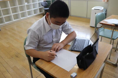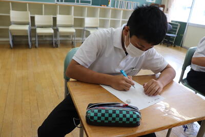 帰校後、感想を記入しました。講話をお聞きし、人権について、さまざまな考えや思いが生まれたのでしょう。スラスラと感想を記入していました。