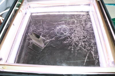霧箱の実験では、α線が紙で遮られる様子を見たり、また、ラドンガスを噴射した中で放射線を発生させ、その中のα線が時間とともに減っていく様子を確認したりと、貴重な経験をさせていただきました。