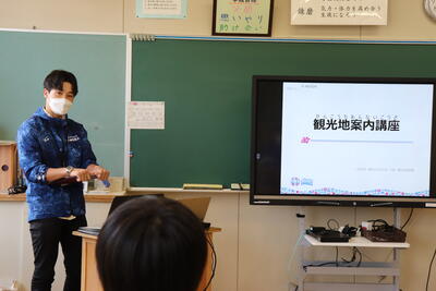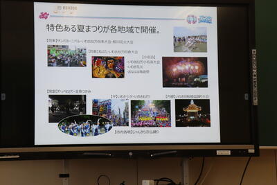 いわき市役所 観光振興課の方に来ていただき、いわき市についてクイズ形式で楽しく、詳しく説明していただきました。