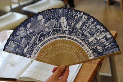 クイズの景品で、こんな素敵な扇子をいただきました!いわきの名物が、たくさん描かれています。