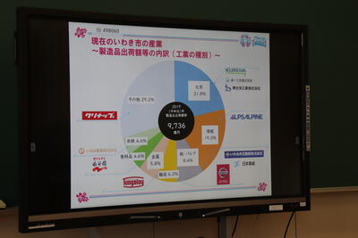いわき市役所 工業・港湾課の方に来ていただき、「いわき市を支えるものづくり産業」について学びました。