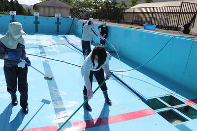 皆様のおかげで、プールも校地もとってもきれいになりました。
