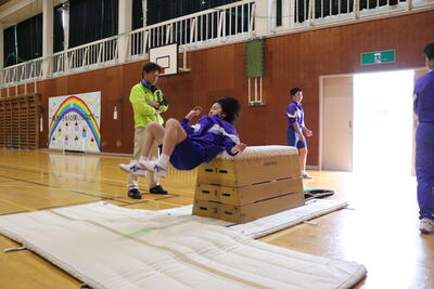 体育の先生の御指導のもと、何度も挑戦します。人数の少ない本校は、待ち時間というものがほぼありません。
