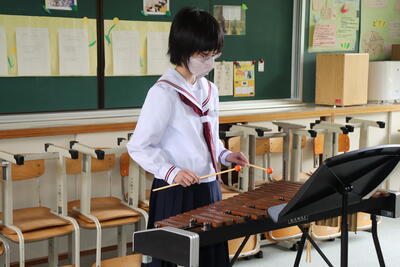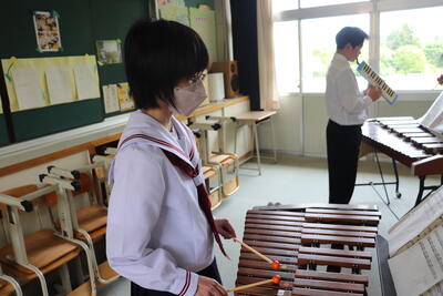 秋に発表するため、音楽の授業だけでなく、昼休みも練習に励んでいます。