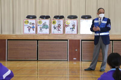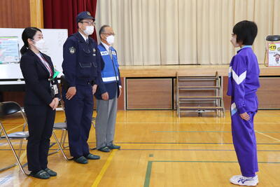 スクールサポーターさんからは、不審者対策5か条「いか・の・お・す・し」を学びました。