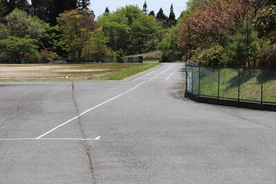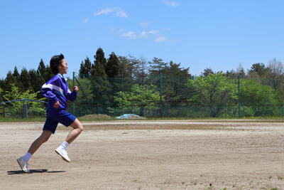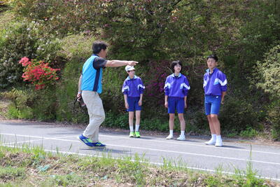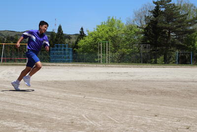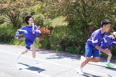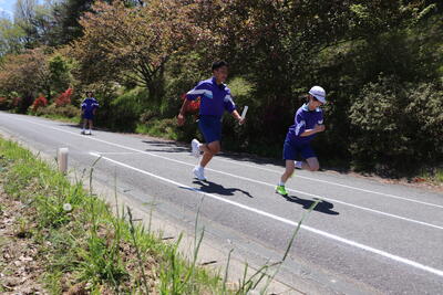 昨日の雨で、グランドコンディションの良くないところもあるため、体育の先生がアスファルトにリレーレーンを作ってくれました。