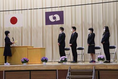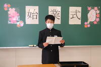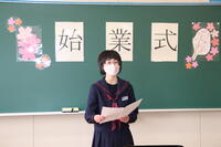 始業式後の新学年の抱負発表。生徒たちは、学習や部活動へ熱い意欲を述べました。
