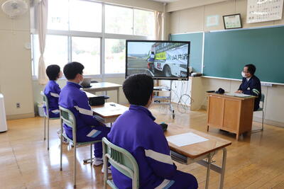 その後、おまわりさんから講話をいただきました。いわき市や川前地区の年間事故件数や、自転車による死亡事故のお話など、生徒たちは真剣に耳を傾けていました。