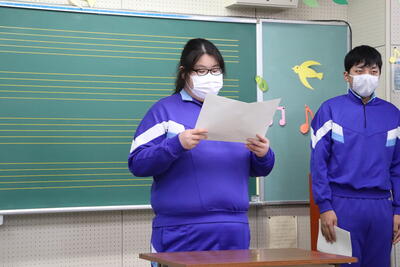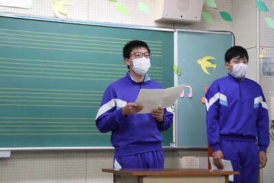 明夢祭を振り返り、事前の準備や当日の発表を通して学んだことを発表しました。どの生徒も、学んだことを今後の生活に生かしたいという強い意志が感じられました。