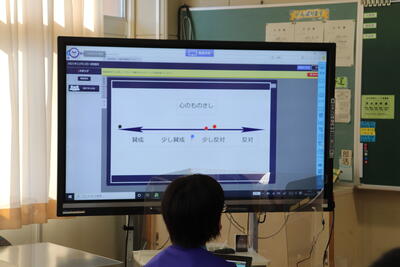 学習支援ソフトミライシードの「ムーブノート」を活用し、意見を集約しました。みんなの意見が一目でわかり、スムーズに授業が進みました。