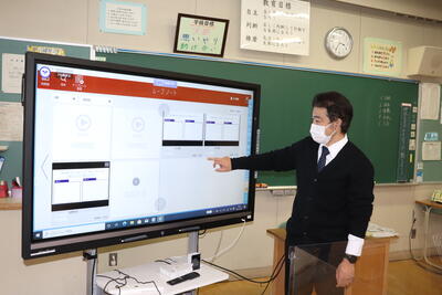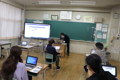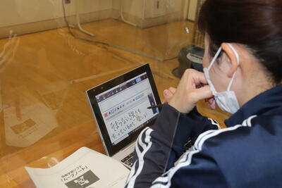本日、ICTの活用について職員研修を行いました。学習支援ソフト「ミライシード」の中の「ムーブノート」を使った授業例を研修資料とし、研修を行いました。