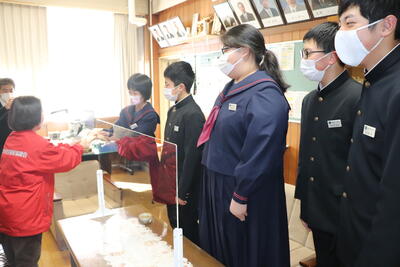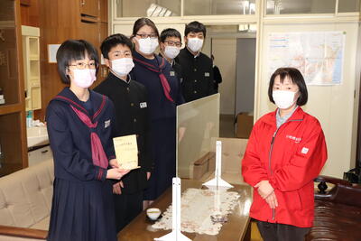 集まった募金は、地域福祉に活用されます。本年度、総合的な学習の時間に福祉について学習しており、募金活動にも力が入っていたことと思います。これからも「自分たちにできること」を考え、行動できる生徒へと成長していってほしいと思います。