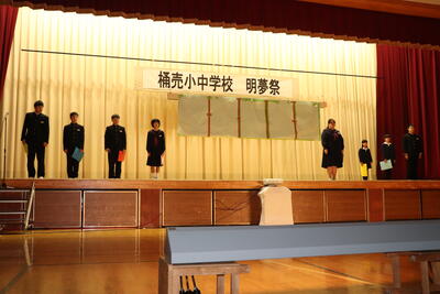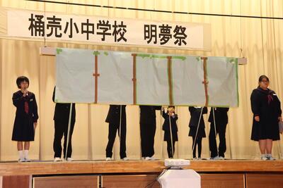 生徒たちによる開会セレモニーのようすです。文化祭スローガン、テーマソングの発表や児童生徒たちで作り上げたビッグアートの披露が行われました。