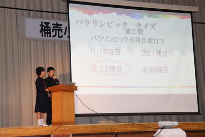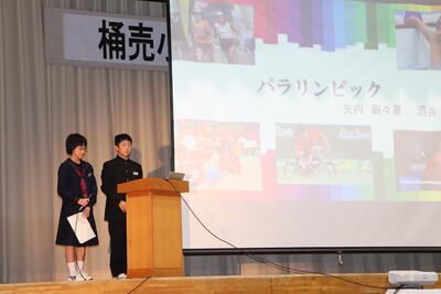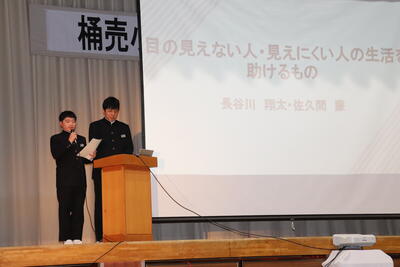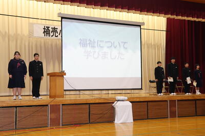 今年度、総合学習では「福祉」について学んできました。福祉と言ってもさまざまです。生徒たちは自分たちでテーマを決めて調べ学習を行い、そこで学んだことをプレゼンテーションにまとめて発表しました。