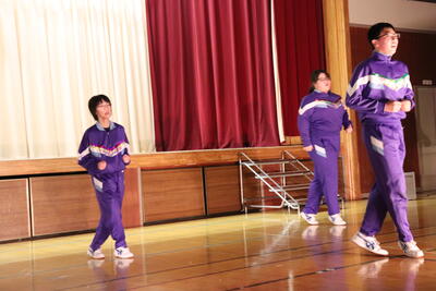 体育の授業でダンスの学習をしました。基本となる8つのステップを組み合わせ、曲に合わせてリズムよく踊りました。