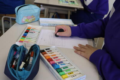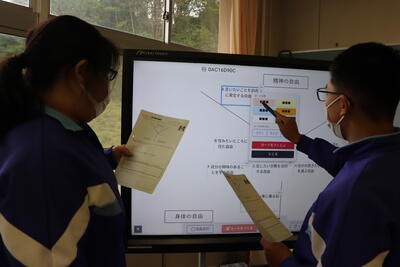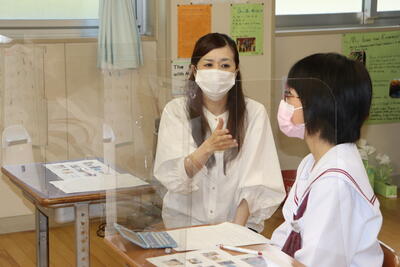 「読む」・「書く」に対して「話す」はとても難しいことです。授業では、リーディング活動を基に獲得したフレーズを活用しながら、アウトプットすることで、話すことの技能を育てています。