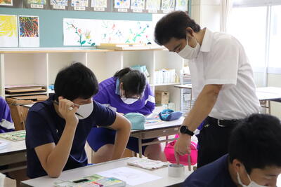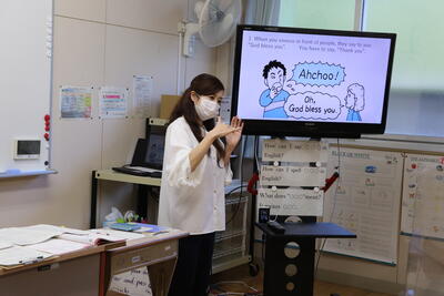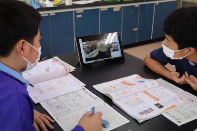2021年9月30日 14時50分先日に続き、今日は英語の研究授業が行われました。助動詞「must」や「have to」を活用し、日米のルール・文化について話し合いました。