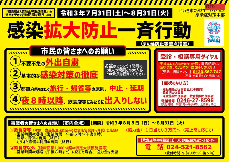 いわき市からの「感染拡大防止一斉行動」もご覧ください。