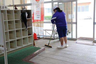 夏休み期間にたまったほこりを掃除しました。少ない人数ですが、協力して校舎全体を清掃しました。