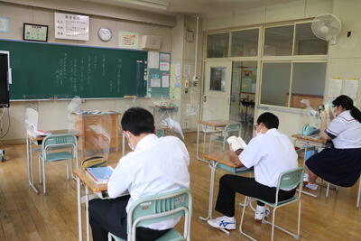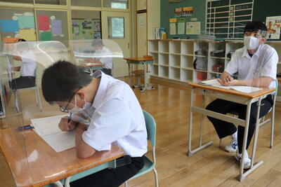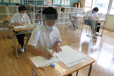 本日まで3時間授業となっております。少ない授業数の中で、生徒たちは集中して学習に取り組んでいます。