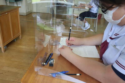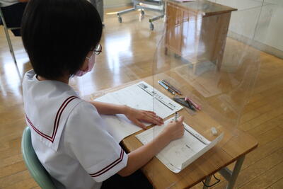 1日目は国語、数学、英語の3科目です。時間いっぱい問題に取り組んでいました。