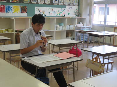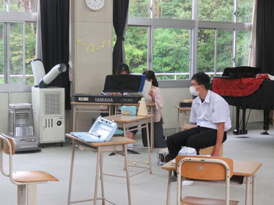 文化祭での合奏発表に向けて、パート練習を行うようすです。感染対策として、パート毎に教室を分けて演奏練習しています。文化祭での発表がとても楽しみです。