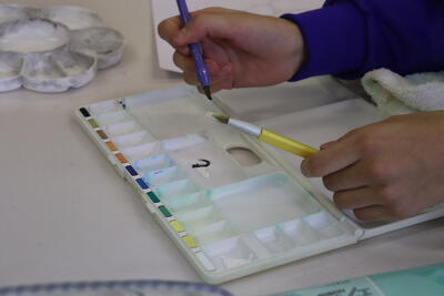 下絵が終わった人は色塗りに入りました。微妙な色の変化を表現してほしいと思います。