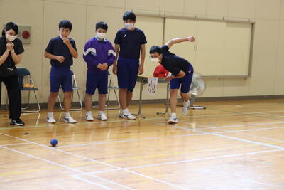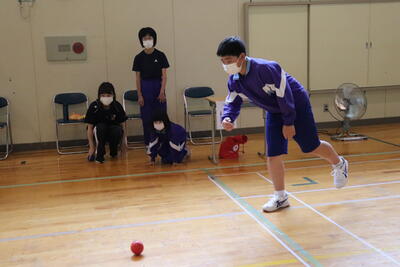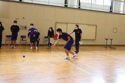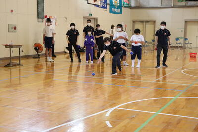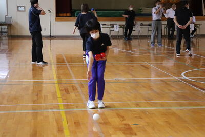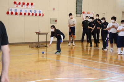参加校は川前小・中学校、小白井中学校、桶売小学校、桶売中学校です。一緒にボッチャに取り組み、仲を深めました。