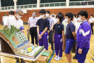 模型を使って、土砂災害の被害の広がり方や減災への取り組みを教えてもらいました。