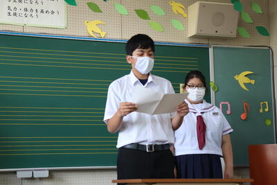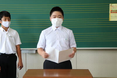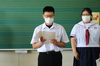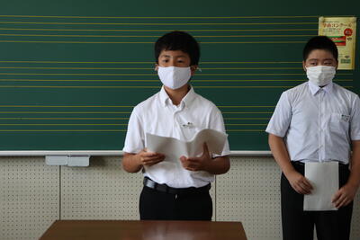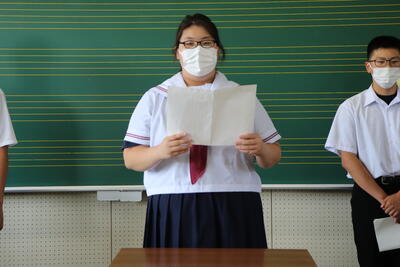 1学期の反省と夏休みの抱負を発表しました。生徒それぞれが生活面や学習面、部活動などについてを振り返っていました。