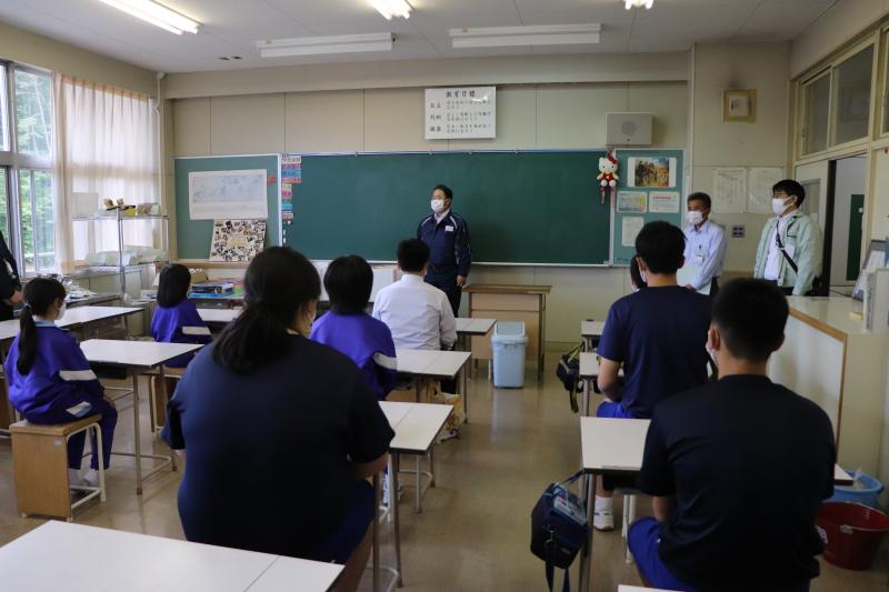 昨年同様、お忙しい中、川前支所から3名の職員の皆様が来校し、川前地区賑わい創出事業について詳しく説明していただきました。