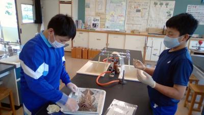 その後、外とう膜を切り開き、内臓の観察をしました。