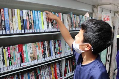 新型コロナウイルス感染拡大防止のため、5月は巡回がありませんでしたので、久しぶりの移動図書館です。
