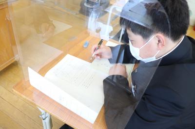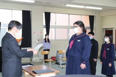 校長先生から任命書を受け取り、自分の役割と責任を自覚したようすでした。