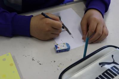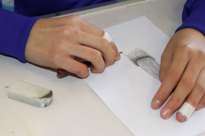 現在、美術の授業では「デッサン」に取り組んでいます。