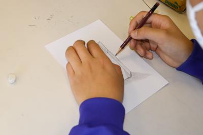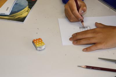 身近にあるものを「鉛筆1本で描き上げる」ために試行錯誤するようすが見られました。