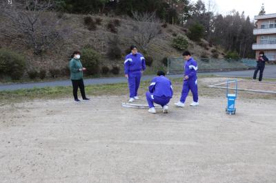 まずは、それぞれの競技に分かれ、競技に必要な線を引くことから始めました。