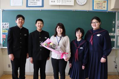 本日で桶売中学校での勤務が最後となる渡邉先生と、お別れのあいさつをしました。