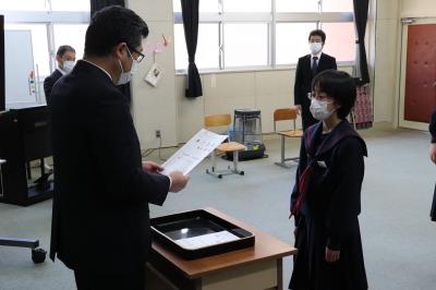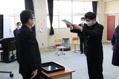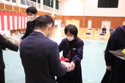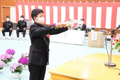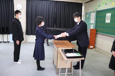 各学年の代表生徒による教科書授与。国から無償で与えられた学びの機会です。大切にしてほしいと思います。