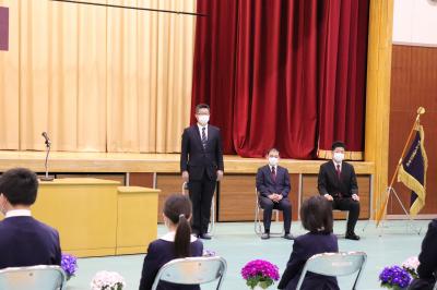 「チーム桶売」は生徒・先生・保護者・地域の方々が一緒に頑張るための合い言葉。人数が少なくても、全員で頑張れば応援してもらえる。支え合うことで力を発揮することができ、次への活力となる。この先、生徒数が減ろうとも、「チーム桶売」の絆を大切にして素晴らしい学校生活を送ってほしい。という内容でした。