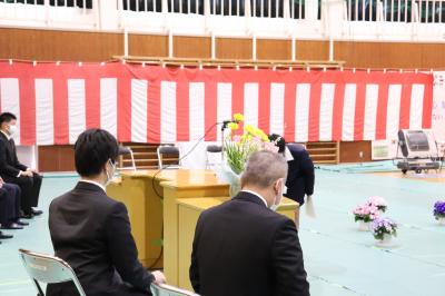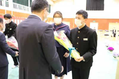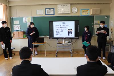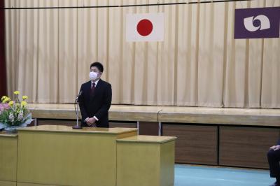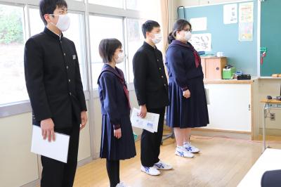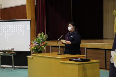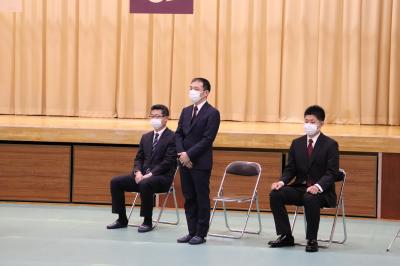 「1年間を振り返って」の生徒発表では、学習面や生活面、部活動についての反省が話されました。生徒それぞれが自分自身の生活を振り返り、来年度につながるものとなりました。