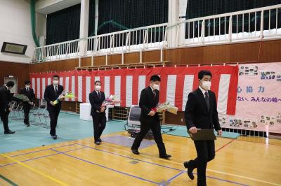 小学校・中学校合わせて6名の先生方の転出です。先生方の最後の挨拶は、生徒・保護者、そして桶売の地への感謝と愛にあふれたものでした。