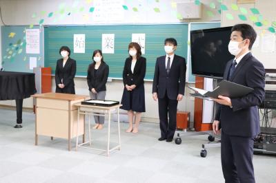 ◎着任式のようすです。新たに着任された先生方の紹介とあいさつがありました。