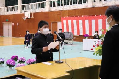 <誓いの言葉>期待と不安の入り交じった思い。先輩や先生方をどんどんと頼ってください。