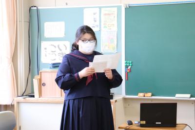 生徒による作文発表は、題目である「新学年の抱負」についてそれぞれの思いが感じられるものでした。